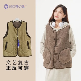 孕之彩秋冬孕妇装 两面穿马甲保暖外出服