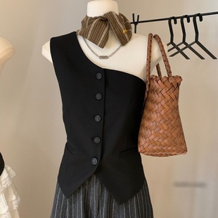 时尚 显瘦短款 上衣不规则斜肩无袖 马甲背心辣妹修身 上衣女 西装 夏季