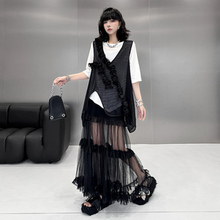 不规则宽松罩衫 时尚 新款 港风小众设计感立体花朵网格马甲2025夏季