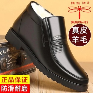 软底中老年爸爸鞋 蜻蜓牌冬季 休闲高帮皮鞋 男商务正装 加绒保暖棉鞋