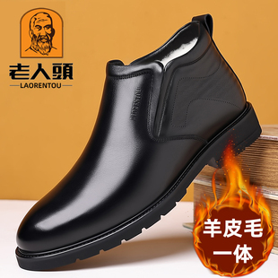 保暖羊皮毛一体爸爸鞋 纯羊毛鞋 防滑 男真皮商务正装 老人头羊毛棉鞋