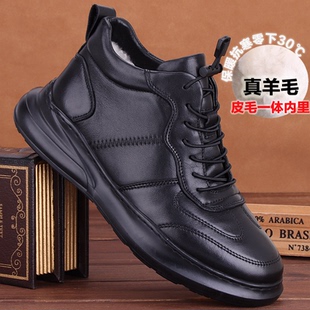 百搭轻便高帮加绒棉鞋 冬季 皮毛一体真皮韩版 男运动鞋 男 保暖羊毛鞋