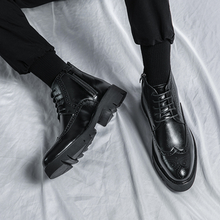 布洛克商务休闲高帮皮鞋 男英伦尖头内增高6cm厚底增高10cm马丁靴