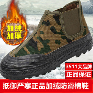 防滑保暖男户外加绒加厚劳保胶鞋 3511冬季 鞋 高帮耐磨迷彩工装 棉鞋