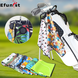 高尔夫球清洁毛巾新款 华夫格卡通印花便携磁吸扣挂钩球场擦杆毛巾