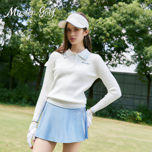 学院运动网球套装 MG秋冬高尔夫女装 美式 针织衫 防走光裙 POLO领长袖