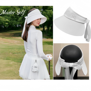 韩国高尔夫球帽女士空顶帽户外运动显脸小golf防晒遮阳丝带无顶帽