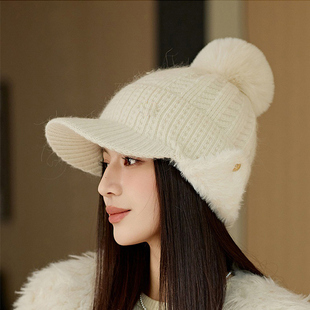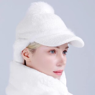 高尔夫女韩版 秋冬兔毛防寒帽户外加厚包耳毛球针织保暖鸭舌帽 新款