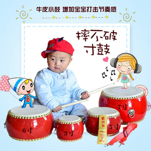小鼓寸鼓牛皮鼓儿童玩具鼓5寸中国鼓牛皮鼓幼儿早教打击乐器 包邮