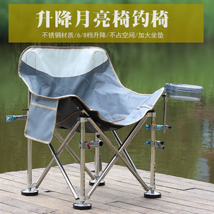 升降月亮椅钓椅神秘灰色8档调节不锈钢加厚便携易折叠月亮钓鱼椅