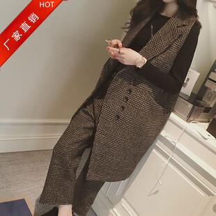 两件套马夹套装 马甲阔腿裤 女秋冬气质显瘦复古厚毛呢西装 洋气时尚