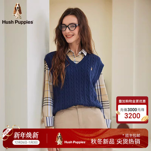 • 2025秋新款 暇步士女装 基础百搭V领纯棉叠穿针织背心 绞花系列