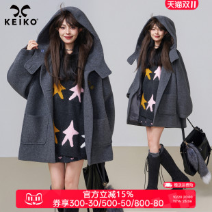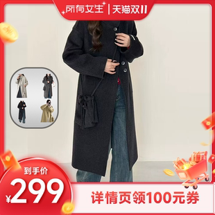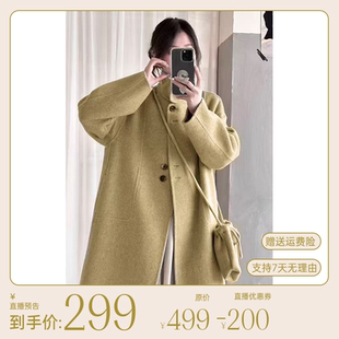 所有女生 连帽 衣橱直播间 圆领 翻领羊毛双面呢大衣 紫涵长款