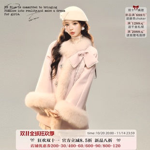 白月光真狐狸毛慵懒氛围感加厚斗篷外套女 初雪人生斗篷 BLUE