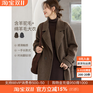 沫晗依美100绵羊毛复古时尚 手工双面羊毛大衣2025冬保暖毛呢外套