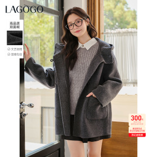 含羊毛LAGOGO灰霭漫游牛角扣双面呢大衣女拉谷谷2025冬季 外套 新款