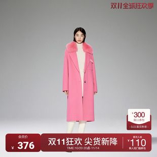 澳洲羊毛双面呢外套女2023新冬可拆狐狸毛领 欧时力 高奢大衣