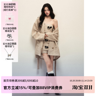 杏色宽松廓形毛呢外套女秋冬系腰带呢子大衣抹胸裙套装 STUDIO