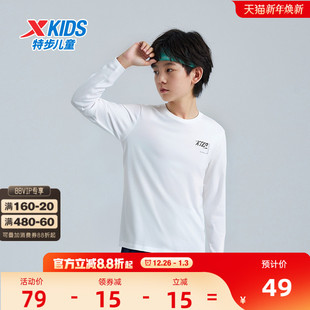 T恤中大童圆领上衣 儿童轻薄长T男童纯色运动长袖 特步童装 秋冬新款