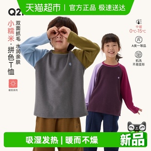Q21小糯米儿童拼色长袖 T恤双面抓绒男女童宝宝5A级抑菌保暖上衣