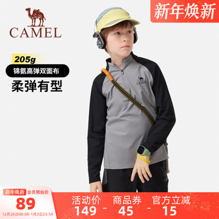 小骆驼儿童运动长袖 半拉链户外透气骑行大童上衣男童T恤 2025新款