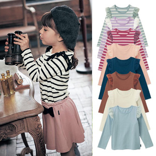 长袖 千家外贸原日系童装 飞边袖 可爱公主休闲 T恤打底衣 春秋纯棉