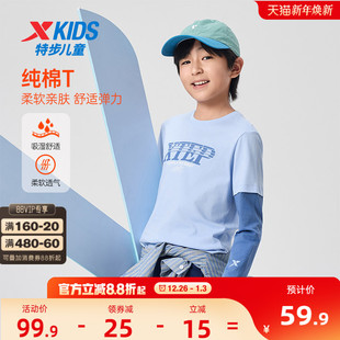 针织衫 特步童装 秋冬儿童运动上衣中大童男童纯棉T拼接假两件长袖
