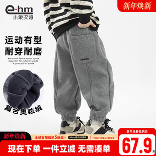 跑步登山长裤 小象汉姆童装 子2025新款 儿童宽松裤 男童冬加绒运动裤