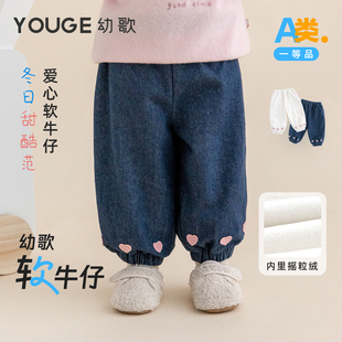 气软糯亲肤束脚裤 趣味爱心加绒保暖软牛仔元 幼歌婴幼儿冬季 YOUGE