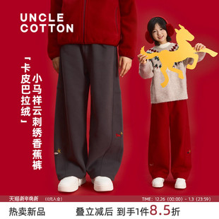 棉叔叔女童小马祥云刺绣休闲裤 卡皮巴拉加绒香蕉裤 男童 新年款