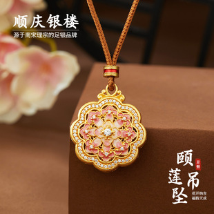 顺庆银楼足银S9999颐莲吊坠女款 国风高级感百搭送礼物 高工新中式
