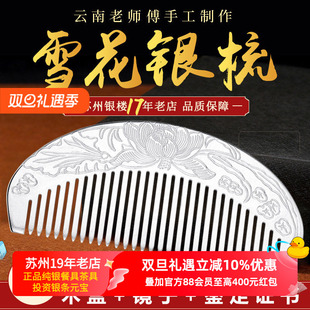 银梳子大小号国潮雪花银足银999纯银手工保健刮痧发梳送女友礼物