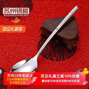 苏州银楼大小号999足银勺子筷子家用咖啡勺纯银长柄汤勺生日礼物