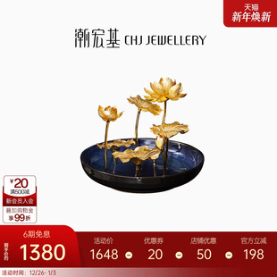 潮宏基蓝莲盆栽金箔摆件莲花莲叶高级感商务送礼纪念礼物礼品LX6
