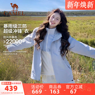骆驼户外冲锋衣男女款 防风防水进藏三防登山服 三合一黑色外套冬季