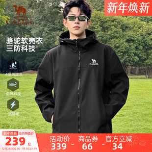 骆驼户外冲锋软壳衣外套男25秋冬加绒夹克黑色防风百搭休闲情侣
