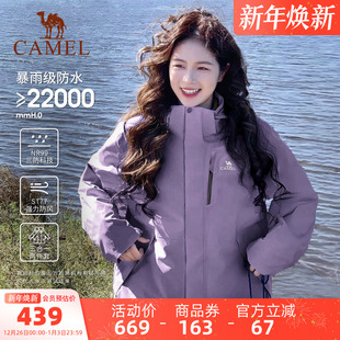 进藏旅游外套冬季 骆驼户外夜紫色冲锋衣三合一男女款 防水登山服装