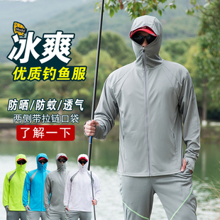 钓鱼防晒衣男户外冰丝防蚊钓鱼服夏季 连帽透气垂钓服外套 定制长袖