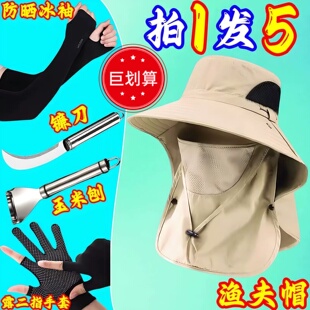 防紫外线遮阳帽子钓鱼遮脸护颈一体钓鱼帽 渔夫帽夏季 拍一发五