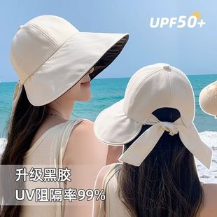 蝴蝶结渔夫帽黑胶防晒帽女士春夏季 防紫外线遮脸大帽檐遮阳帽子女