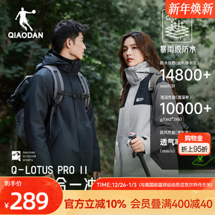 中国乔丹三合一冲锋衣硬壳男女同款 可拆卸帽防暴雨户外登山服 冬季