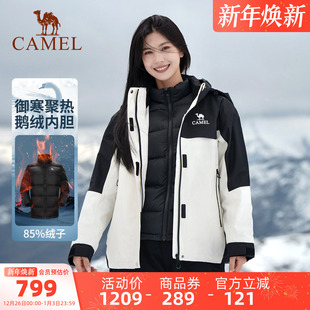骆驼户外三防鹅绒内胆冲锋衣女三合一两件套羽绒服男滑雪服装 外套