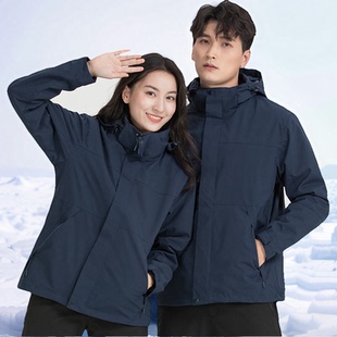 户外冲锋衣定制印logo秋冬加绒加厚三合一两件套女防风防水外套男