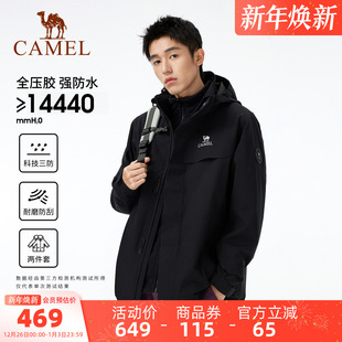 骆驼户外天选铠甲机能冲锋衣男三合一可拆卸两件套防水登山服外套