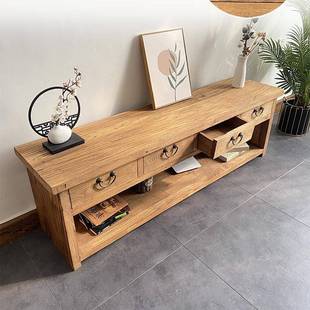 北方老榆木家具老门板风化纹理简约式 电视柜展厅博古架茶桌椅组合