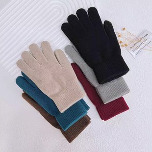 纯色针织手套男女士秋冬季 保暖加绒弹力毛线分指学生骑行防寒手套