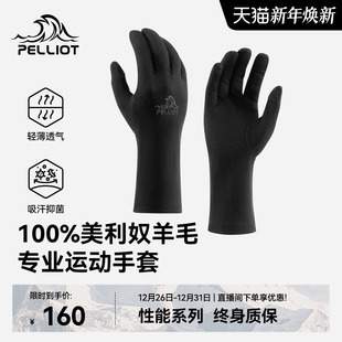 伯希和户外手套男美利奴羊毛秋冬登山保暖徒步防风跑步骑行内胆女