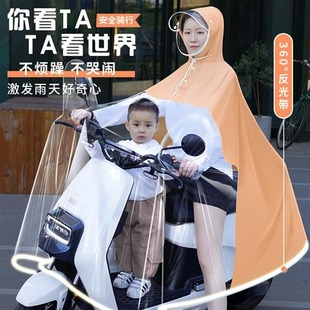 雨衣电动车双人亲子接送女防暴雨透明母子雨披电瓶下雨天接娃神器