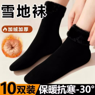 加绒加厚雪地袜防冻保暖袜子男女长筒地板袜抗寒 冬季 10双装
