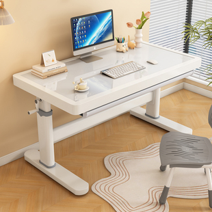 儿童学习桌可升降小学生家用小户型钢化玻璃书桌铁艺写字桌椅套装